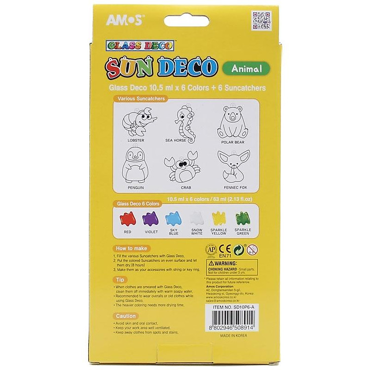 Các thông tin khác: Hộp Màu Vẽ Trang Trí Trên Kính AMOS Glass Deco Sundeco Animal SD10P6-A