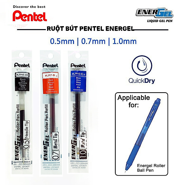 - Ruột bút Gel Pentel LR7, cỡ ngòi 0.7mm