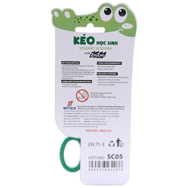 Các thông tin khác: Kéo Học Sinh Cá Sấu 140 mm – Smart Kids SC05
