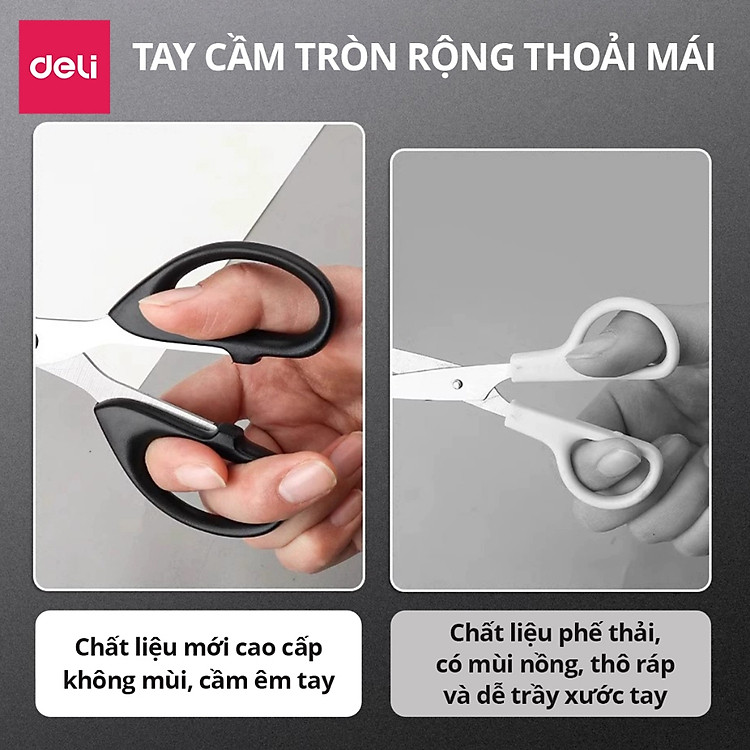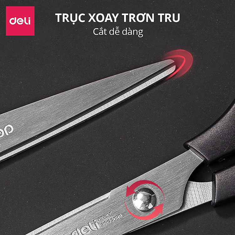 - Kéo văn phòng lưỡi thép không gỉ Deli, sắc bén và bền bỉ.