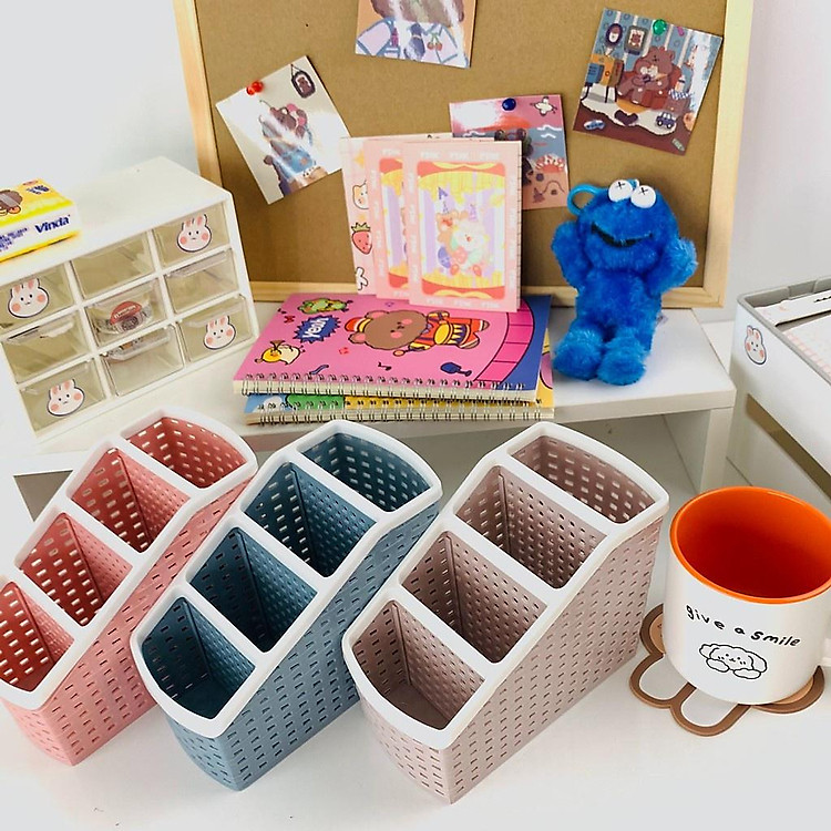 Review văn phòng phẩm Khay Cắm Bút, Đựng Mỹ Phẩm 4 Ngăn