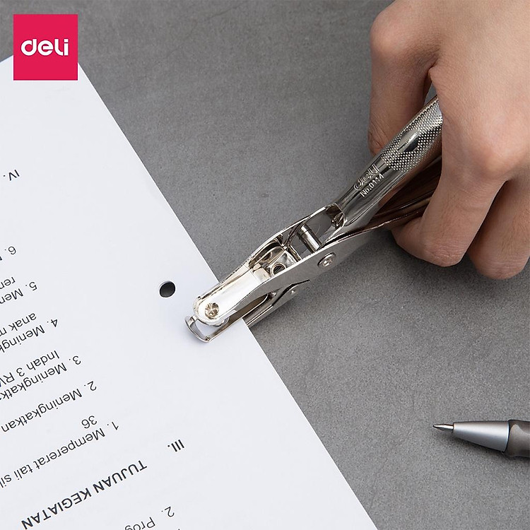 - Loại sản phẩm: Kìm bấm lỗ giấy refill Deli, xuất xứ từ Trung Quốc.
