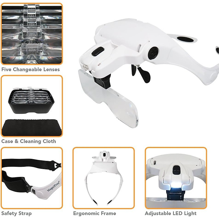 – Ống kính phóng đại 1X đến 2,5X lý tưởng cho việc đọc sách và các ứng dụng rảnh tay như may vá và đan lát, trong khi ống kính 3,5X lý tưởng cho việc hàn, xây dựng mô hình, thẩm định đồ trang sức, sửa chữa đồng hồ và đồ điện tử.