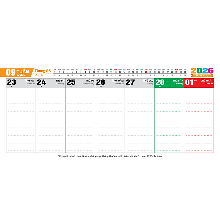 - Trang lịch in trên giấy chất lượng cao, mịn màng và dày dặn.