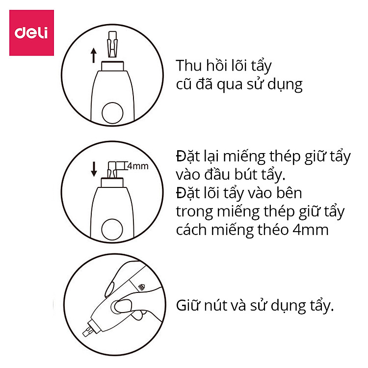 - Lõi tẩy thay thế cho bút tẩy điện Deli 71107 và EH02800.
