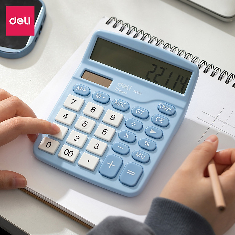 - Máy tính cầm tay, máy tính để bàn 12 số Deli, nhiều màu sắc (Bạc, Xanh lá, Xanh dương).
