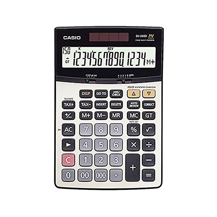 - Máy tính CASIO DJ-240D với màn hình hiển thị số lớn, dễ đọc.