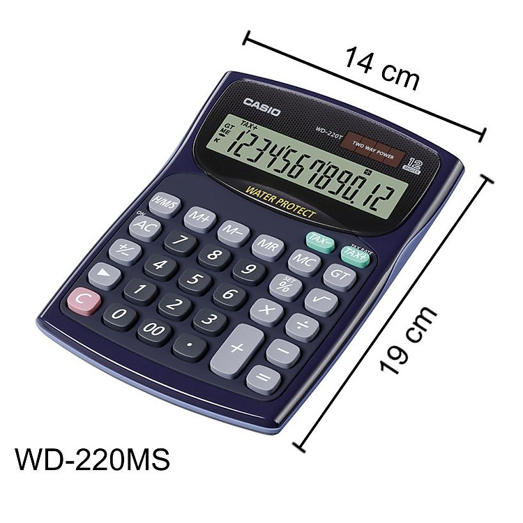 - Máy tính để bàn Casio WD-220MS-BU, thiết kế nhỏ gọn và tiện lợi.