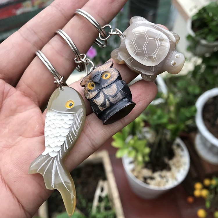 Được các người thợ làm thủ công làm nhẵn bóng toàn bộ chiếc móc khóa, khéo léo mài dũa từng chi tiết, làm hoàn toàn thủ công bằng chóp sừng, các đường nét khía tỉ mỉ tinh xảo.