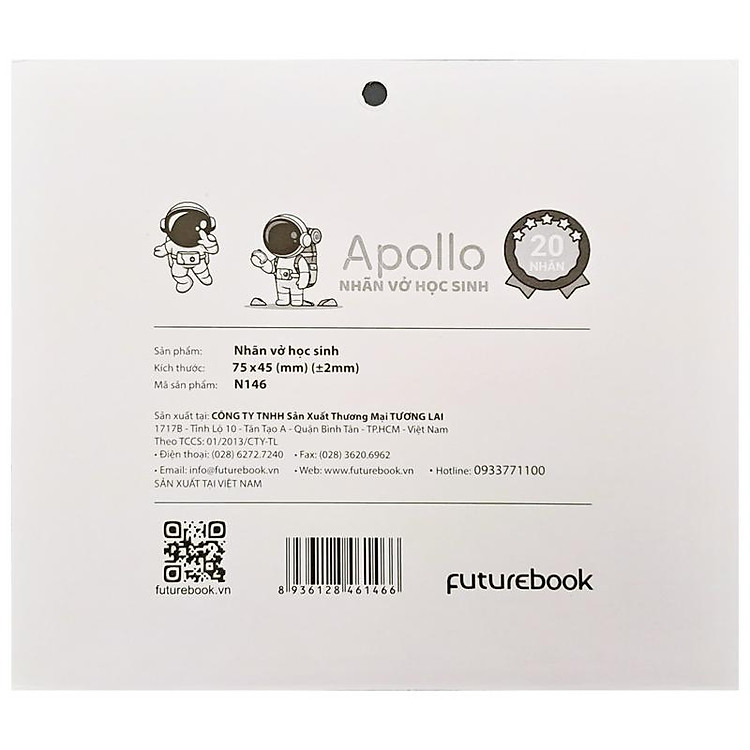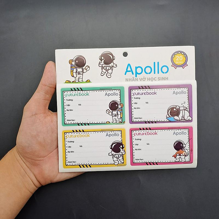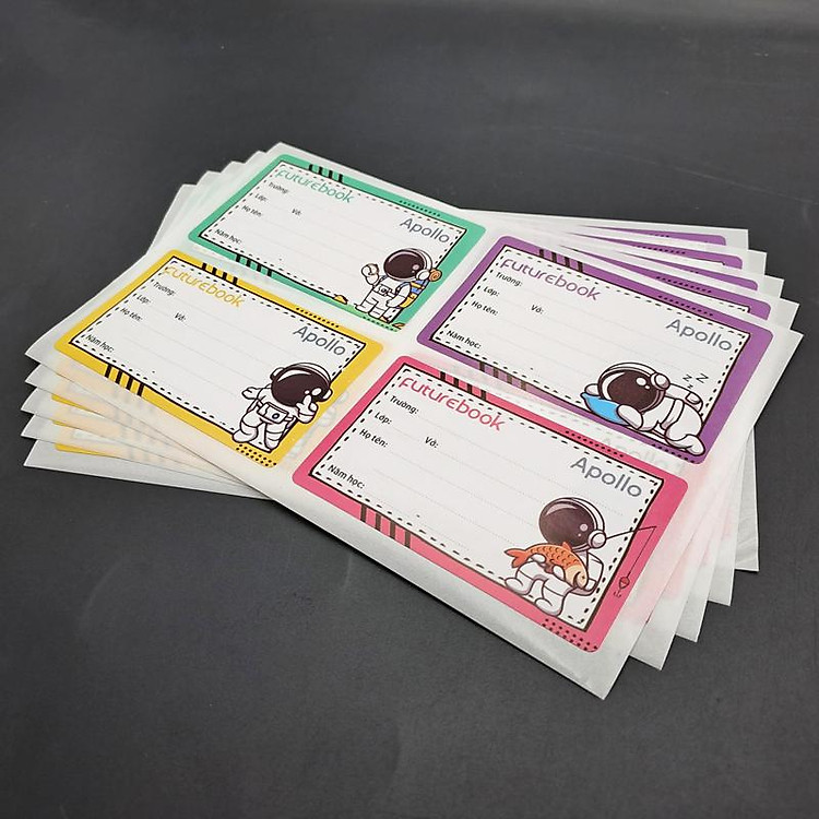 - Nhãn vở Học Sinh Apollo – futurebook N146 gồm 20 nhãn, giúp phân biệt các môn học.