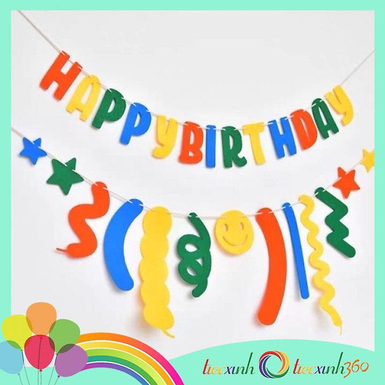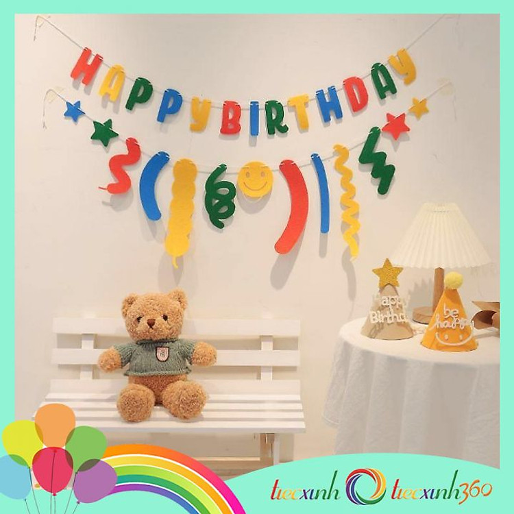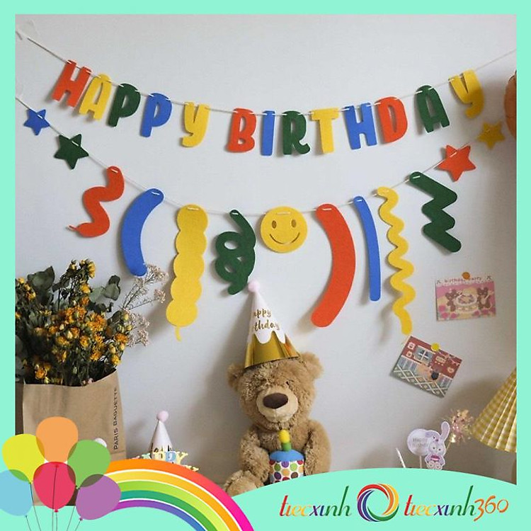 - Set phụ kiện trang trí sinh nhật “Happy Birthday” bằng vải nỉ.