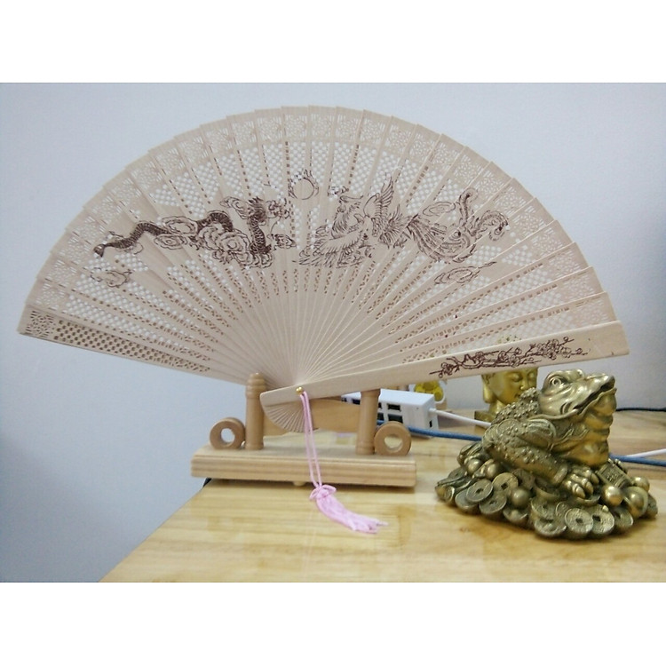 Quạt Rồng Phượng Gỗ Cổ Trang Phong Thủy
