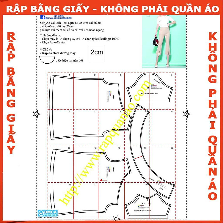 - Rập giấy A0 mã 559 dành cho áo trễ vai, đã được may thử.