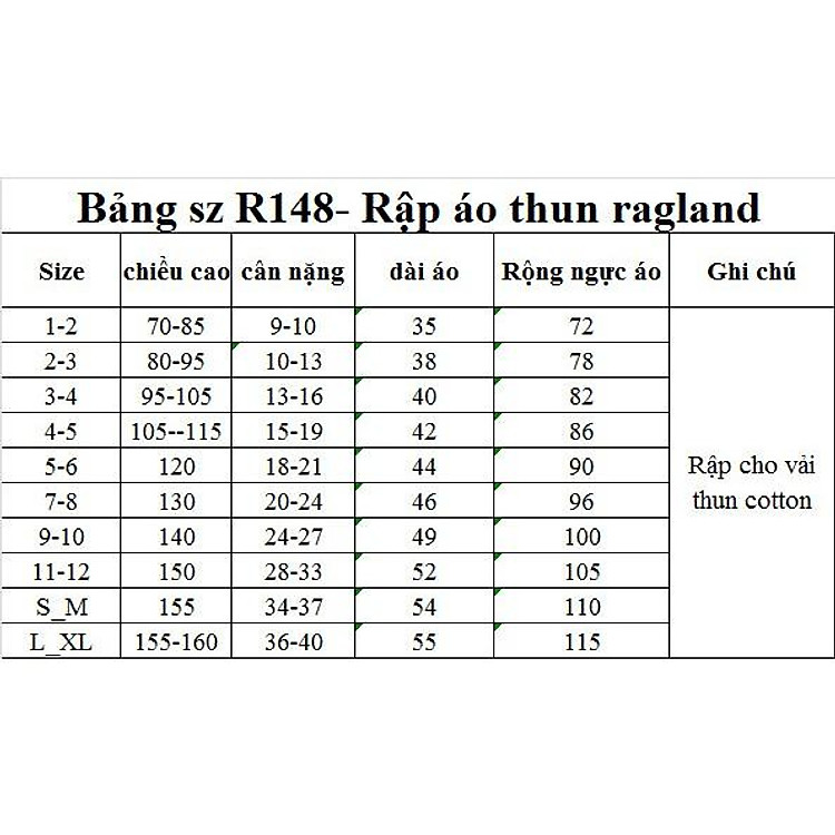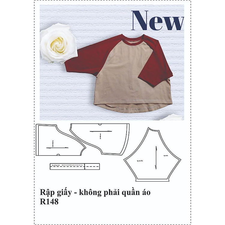 - Rập giấy A0 R148 cho áo thun ragland cánh dơi, sử dụng cho vải cotton.