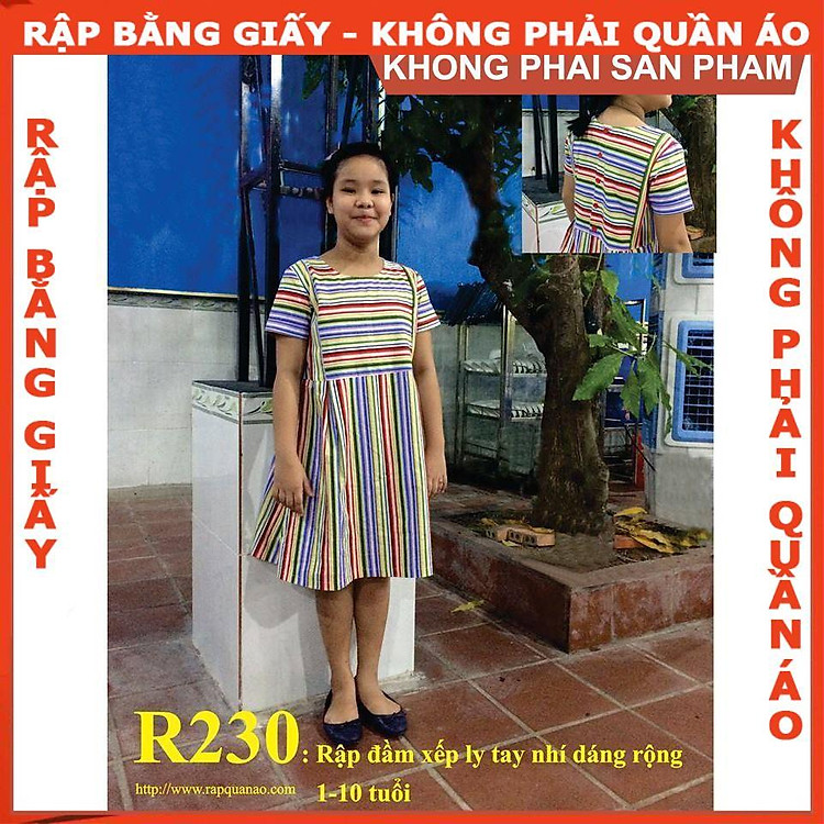 - Rập giấy A0 mã R230 được in màu, đã được may thử, phù hợp cho những ai không biết vẽ cắt.