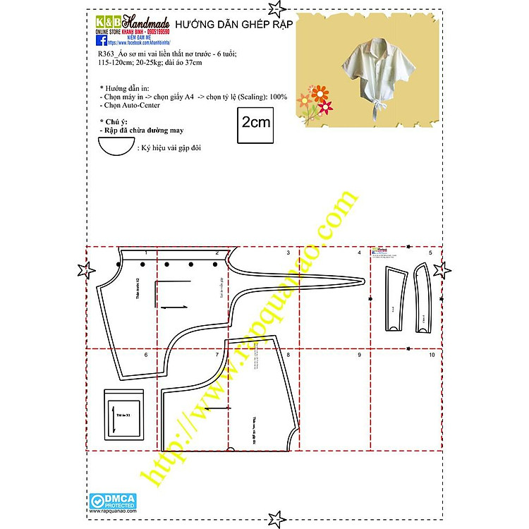 - Rập sơ mi cho bé in từ giấy A0, đã được may thử.