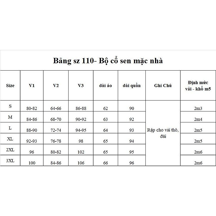 - Rập giấy bộ cổ sen dài tay mã 110, bao gồm áo cổ sen gài nút và quần lưng thun 3cm có túi.