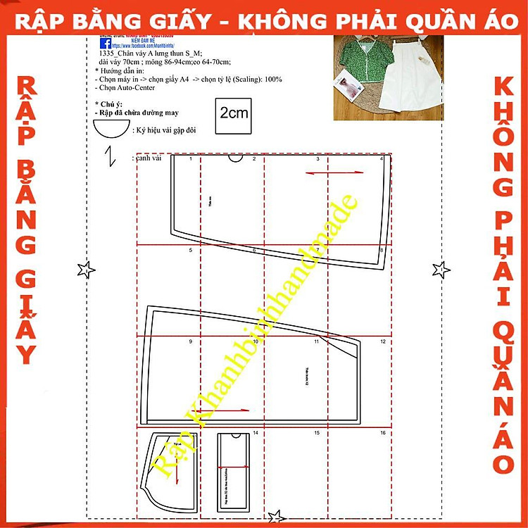 - Rập giấy mã 1335 chân váy A lưng thun, không phải quần áo mặc được.