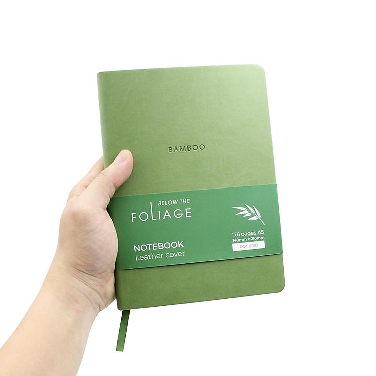 Sổ Bìa Da A5 – Không Kẻ Có Chấm 176 Trang 100gsm – Foliage Bamboo – The Sun – Màu Xanh Lá