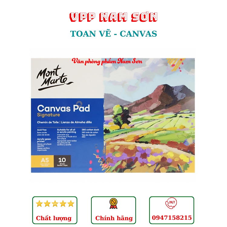 Canvas Pad là sản phẩm mới nhất của Mont Marte dành cho những người mới tập vẽ màu sơn dầu, màu acrylic, rất tiện dụng nhé . Bạn có thể dùng trực tiếp sản phẩm để vẽ không cần khung tranh. Giá thành hợp lý, mang đi vô cùng tiện dụng. Chất liệu canvas từ vải bố dày chất lượng tốt cho khả năng bám màu cao,tái hiện sinh động chất màu và khả năng bảo quản tốt. Chất liệu sử dụng phù hợp: acrylic, sơn dầu.