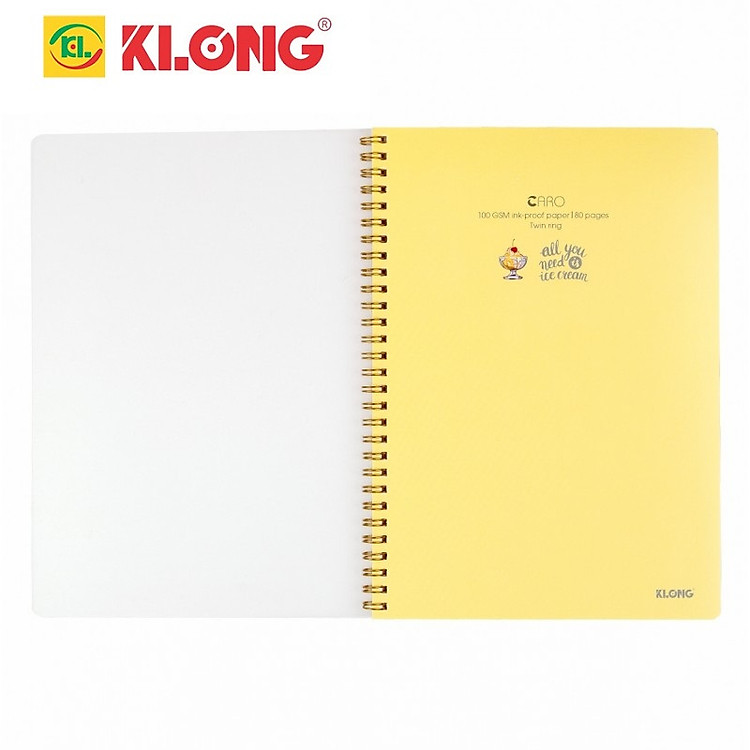 - Sổ lò xo kép Caro B5, 80 trang, bìa nhựa, màu vàng.