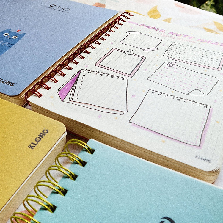 - Sổ lò xo kép KLONG Caro B5 với 200 trang giấy dày, thích hợp cho viết và vẽ.