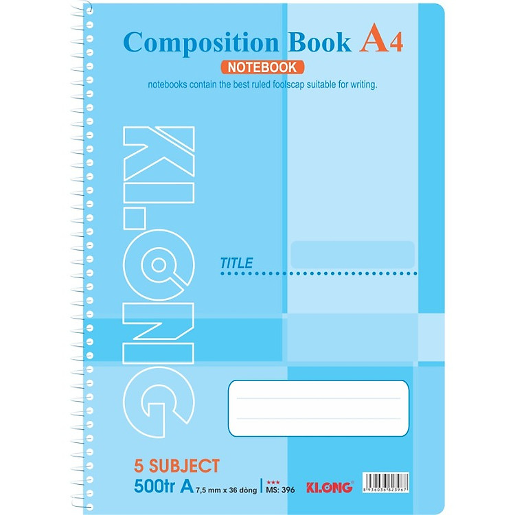- Tên sản phẩm: Sổ lò xo đơn KLONG A4 500tr 58/90; MS: 396