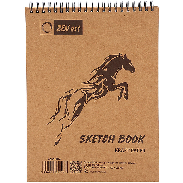 - Tên sản phẩm: Sổ Lò Xo Vẽ Kraft 8726 – Kích thước 190 x 250 mm, 60 Tờ DL80.
