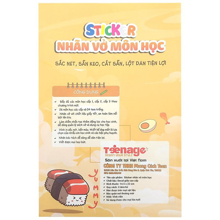 Các thông tin khác: Sticker Nhãn Vở Môn Học Teenage NV-03 (Bộ 3)