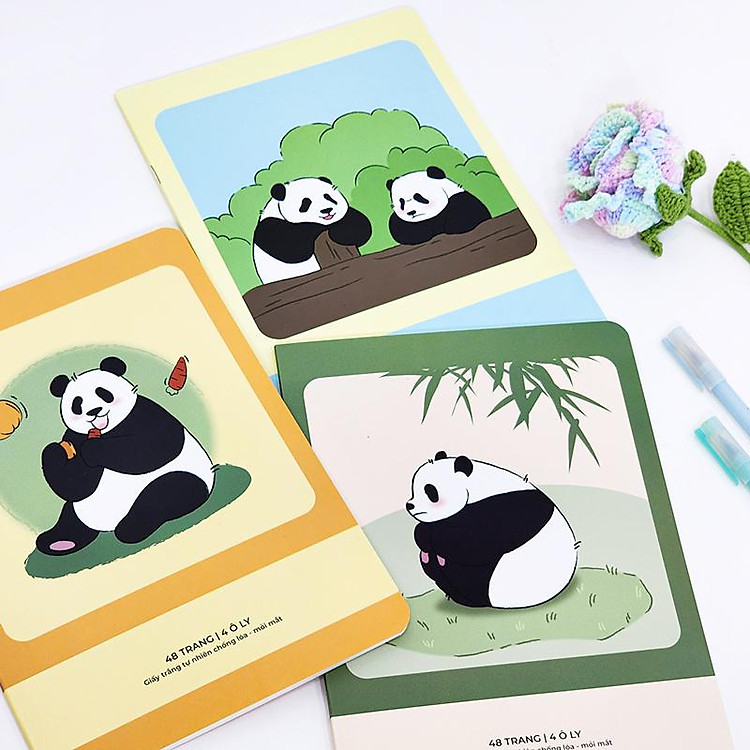 - Tập Học Sinh Chống Lóa Fluffy Panda với 4 ô ly, 48 trang, giấy 100gsm.