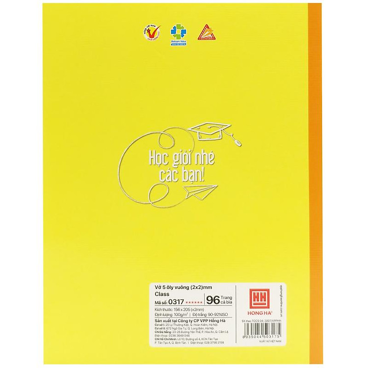 - Tập Học Sinh Class Điểm A 5 Ô Ly Vuông, 96 trang, 100gsm từ thương hiệu Hồng Hà.
