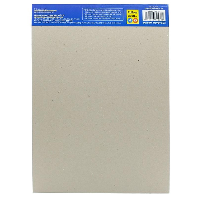 - Tập Vẽ Canvas A3 280gsm từ thương hiệu Colormate, sản xuất tại Việt Nam.