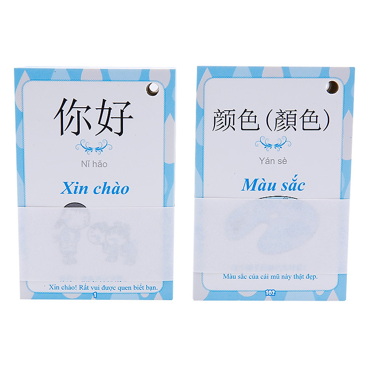 hộp nhỏ xinh dễ thương. do quá lười mở sách nên mình thử mua flashcard học từ vựng xem có siêng hơn dc tí nào không. hình ảnh đẹp, có chữ phồn thể + giản thể, và ví dụ sử dụng nữa. một luu ý nhỏ, là tấm card có lỗ mà ko có khoen hay dây đi cùng :))