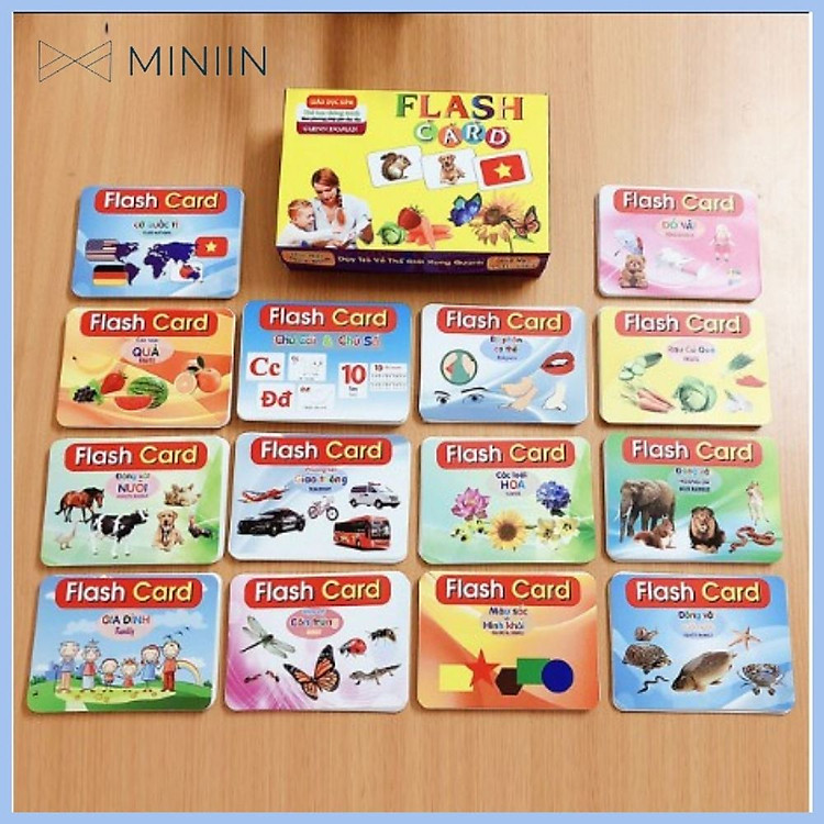 - Bộ Thẻ Học Thông Minh Flashcard Song Ngữ cho bé, gồm hơn 14 chủ đề phong phú.