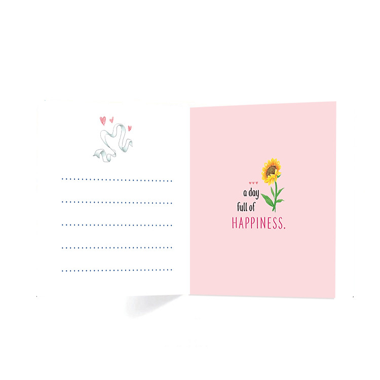 - Thiết kế bên trong in những hình ảnh dễ thương, xinh xắn để viết những nội dung gửi đến người thân, bạn bè, gia đì Tờ giấy viết nội dung in những họa tiết đơn giản, bắt mắt.