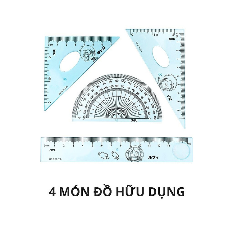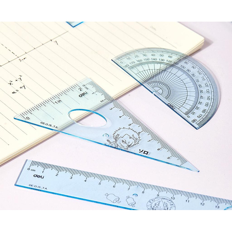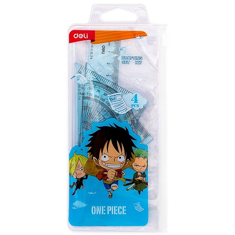- Thước Bộ Eke One Piece – Deli EH17 là dụng cụ học tập phổ biến cho học sinh tiểu học.