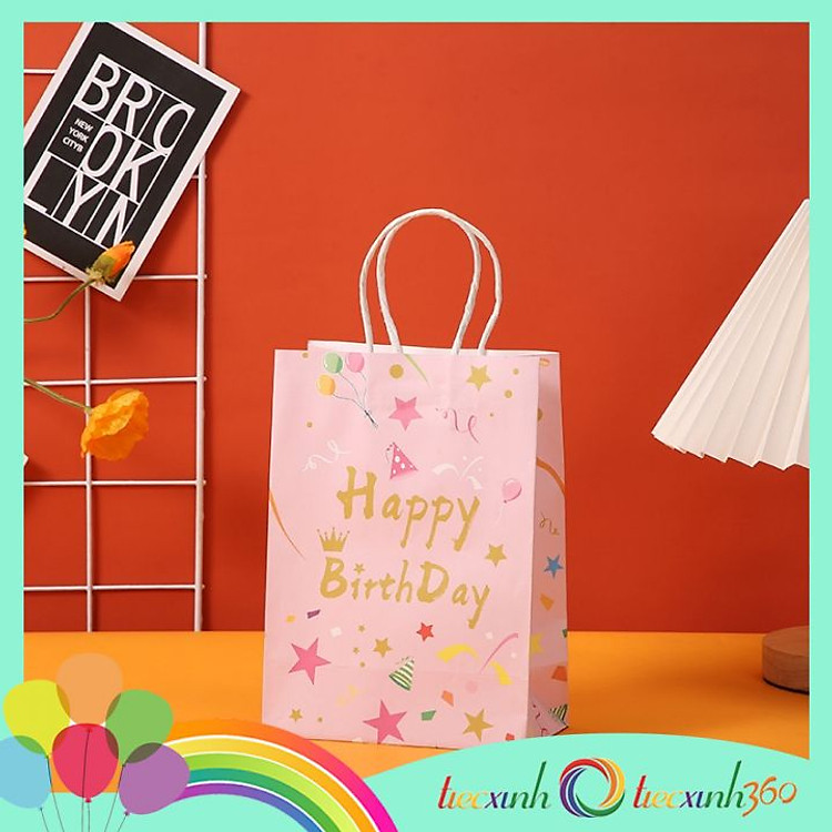 - Túi giấy đựng quà cho tiệc sinh nhật, kích thước 15 x 21 x 8 cm.