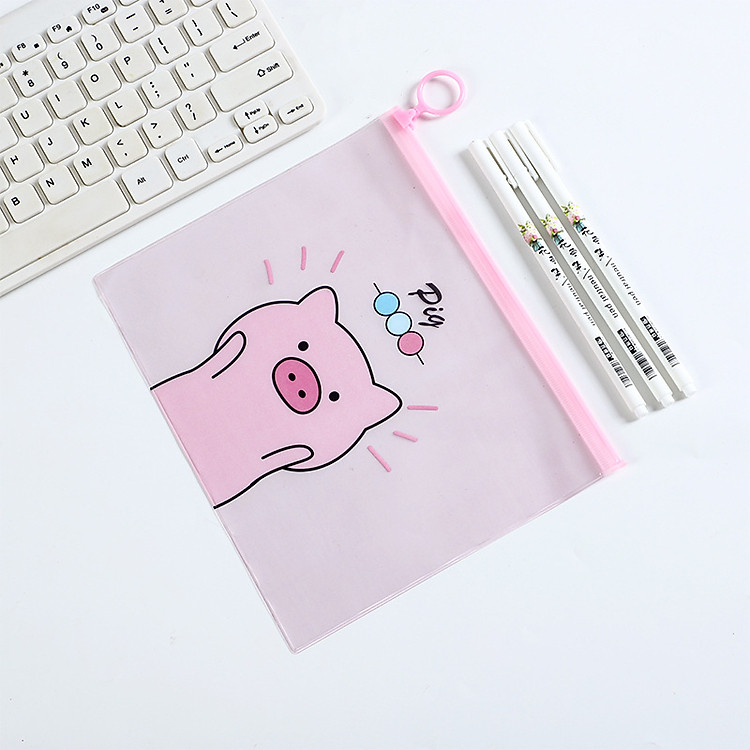 Khám phá đồ dùng văn phòng Túi Zip Đựng Bút Chống Thấm Hình Heo Hồng (4 túi)