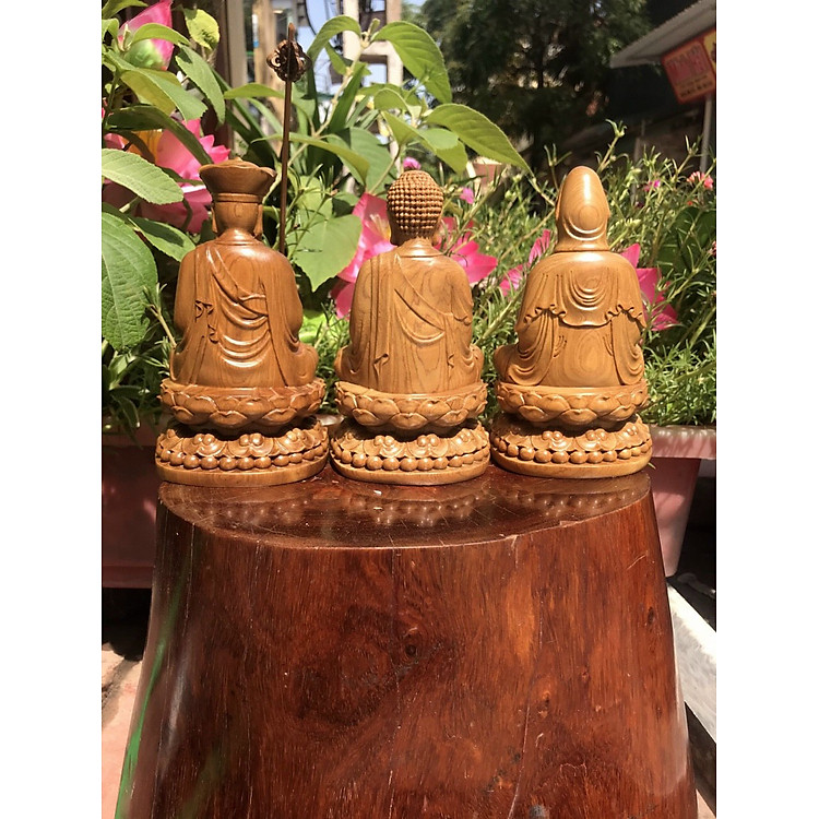 - Tượng Tây Phương Tam Thánh mini làm từ gỗ bách xanh tự nhiên 100%.
