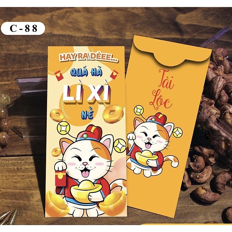 - Kích thước mỗi bao lì xì: 8 x 16 cm.
