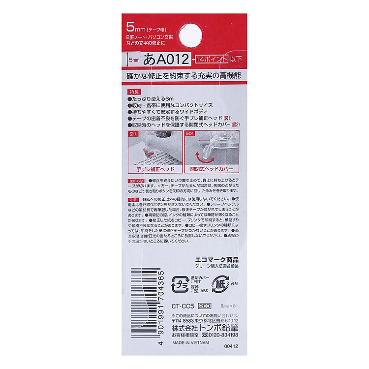 - Xóa Kéo Mini Mono A012 Tombow Ct-Cc5C 5Mm với lớp xoá kéo khô.