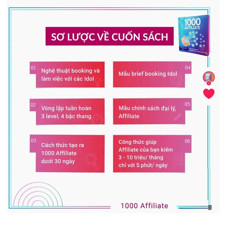 Nói nôm na là, cuốn sách này ghi lại hành trình của Linh cùng đội ngũ của mình khi họ tạo ra 1000 affiliate đầu tiên. Nó không chỉ đơn thuần là câu chuyện mà còn chứa đựng rất nhiều kiến thức về nghệ thuật booking và cách để tạo ra thu nhập ổn định từ affiliate marketing chỉ trong 30 ngày. Có vẻ như đây là một bí quyết mà nhiều người đang tìm kiếm!