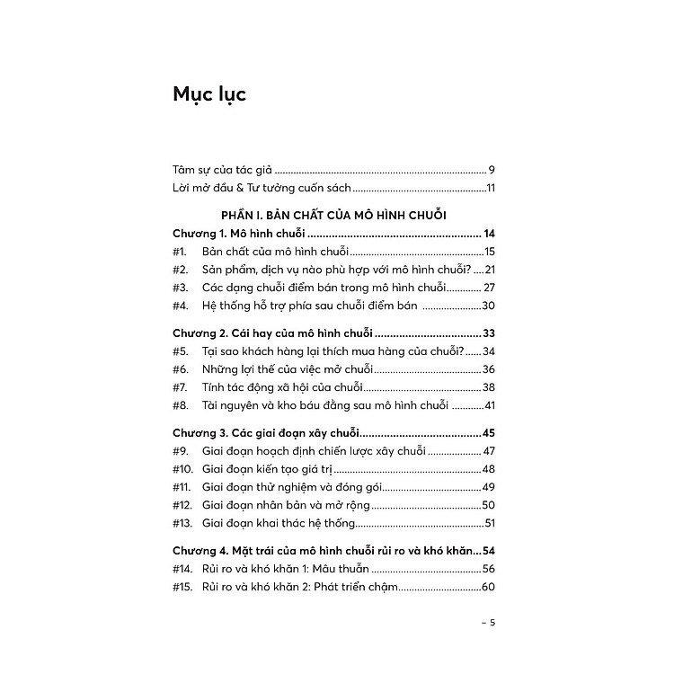 Nói nôm na là, cuốn sách sẽ dẫn dắt bạn từ giai đoạn ý tưởng cho đến khi bạn có một điểm bán mẫu thành công và mở rộng thành chuỗi lớn. Nó phân tích từng giai đoạn của quá trình hình thành chuỗi, giúp bạn nhận ra những điều mà ít ai chia sẻ. Đặc biệt, sách đi sâu vào những “kho báu” nằm ở các lớp sâu của mô hình kinh doanh, chứ không chỉ là những gì hiện ra trước mắt.